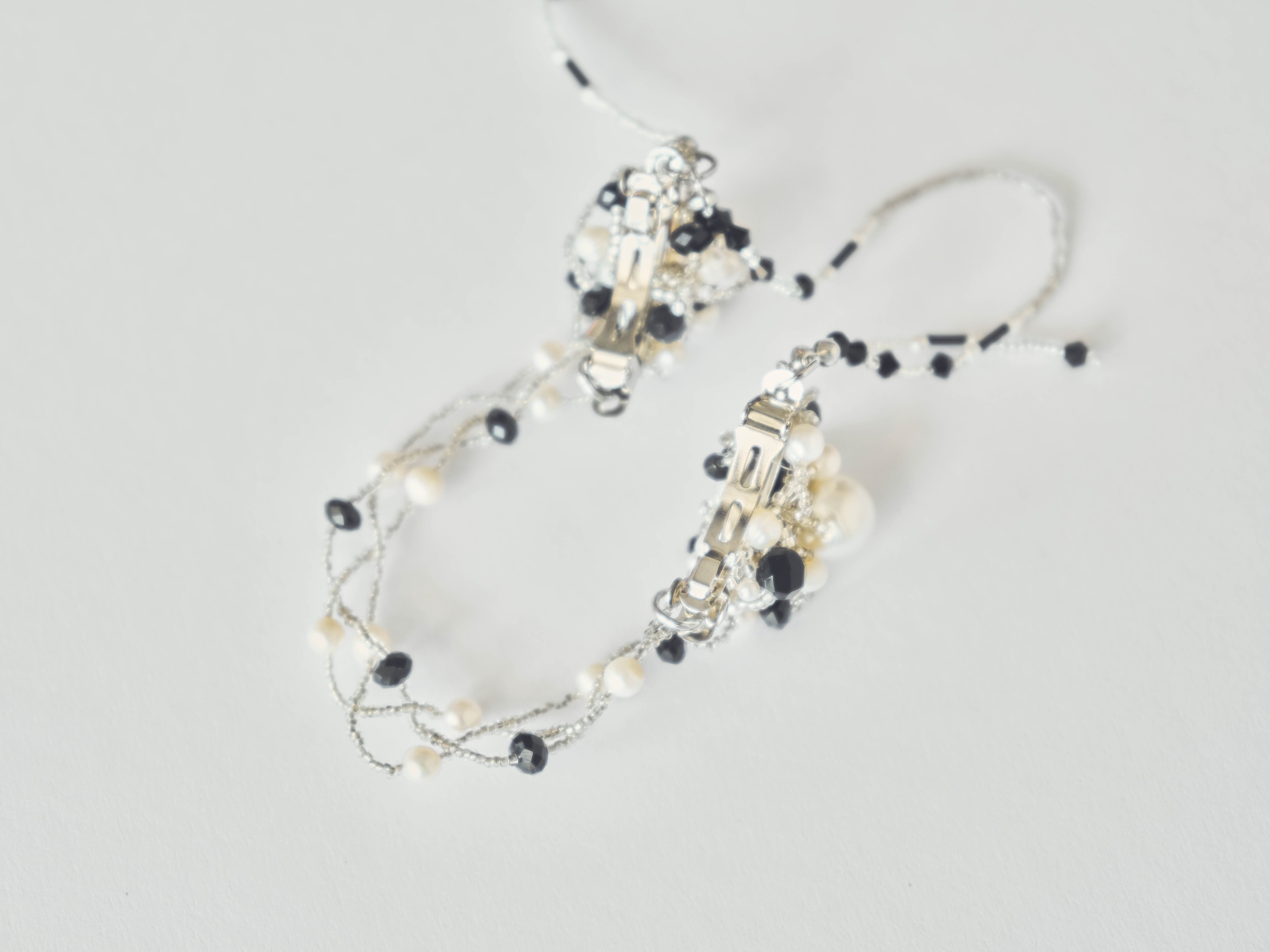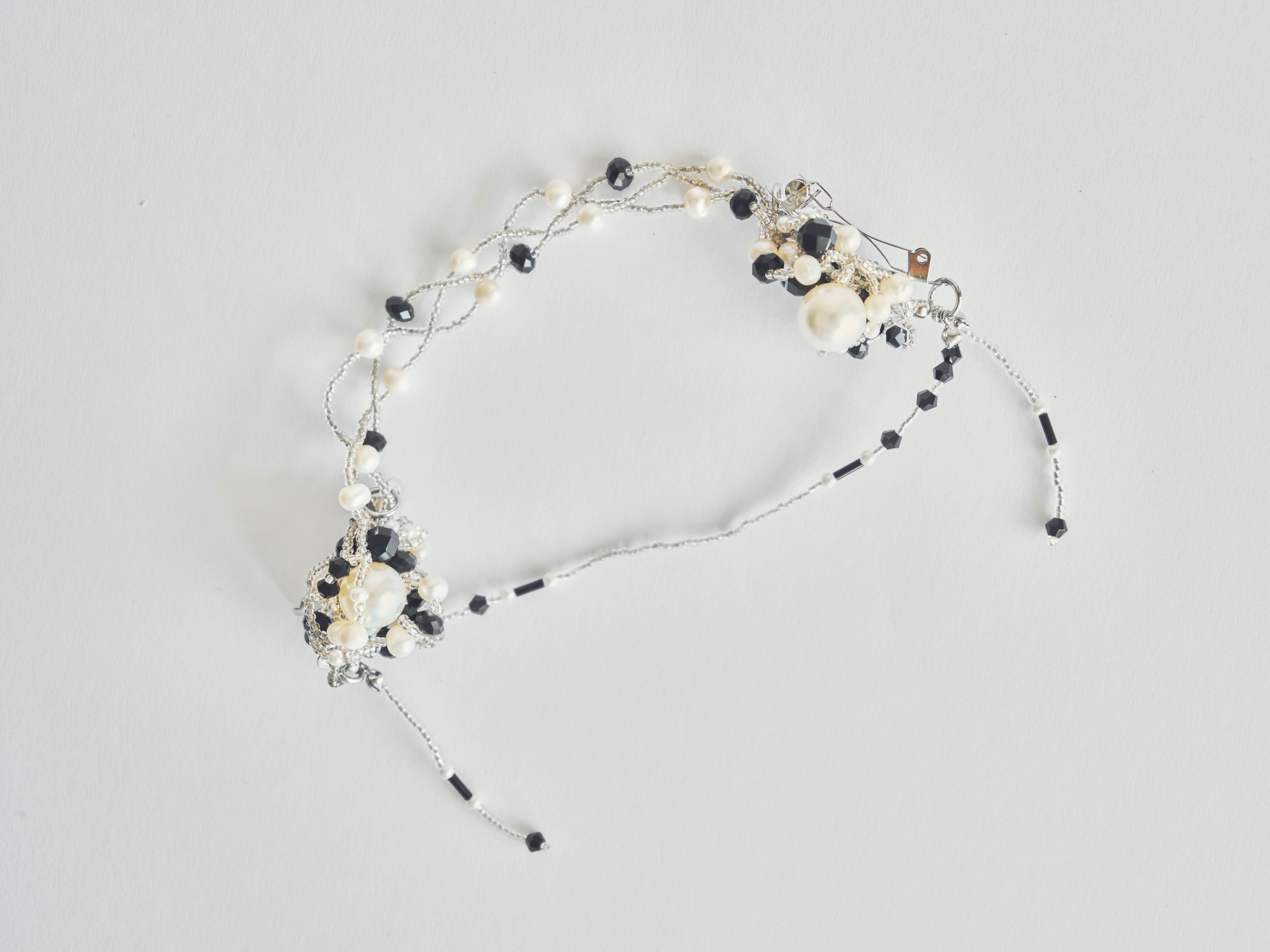 本体: ビーズ(ガラス等)、淡水パール、シェルパーツ、一部ヴィンテージパーツ使用のため組成の特性不可のものあり