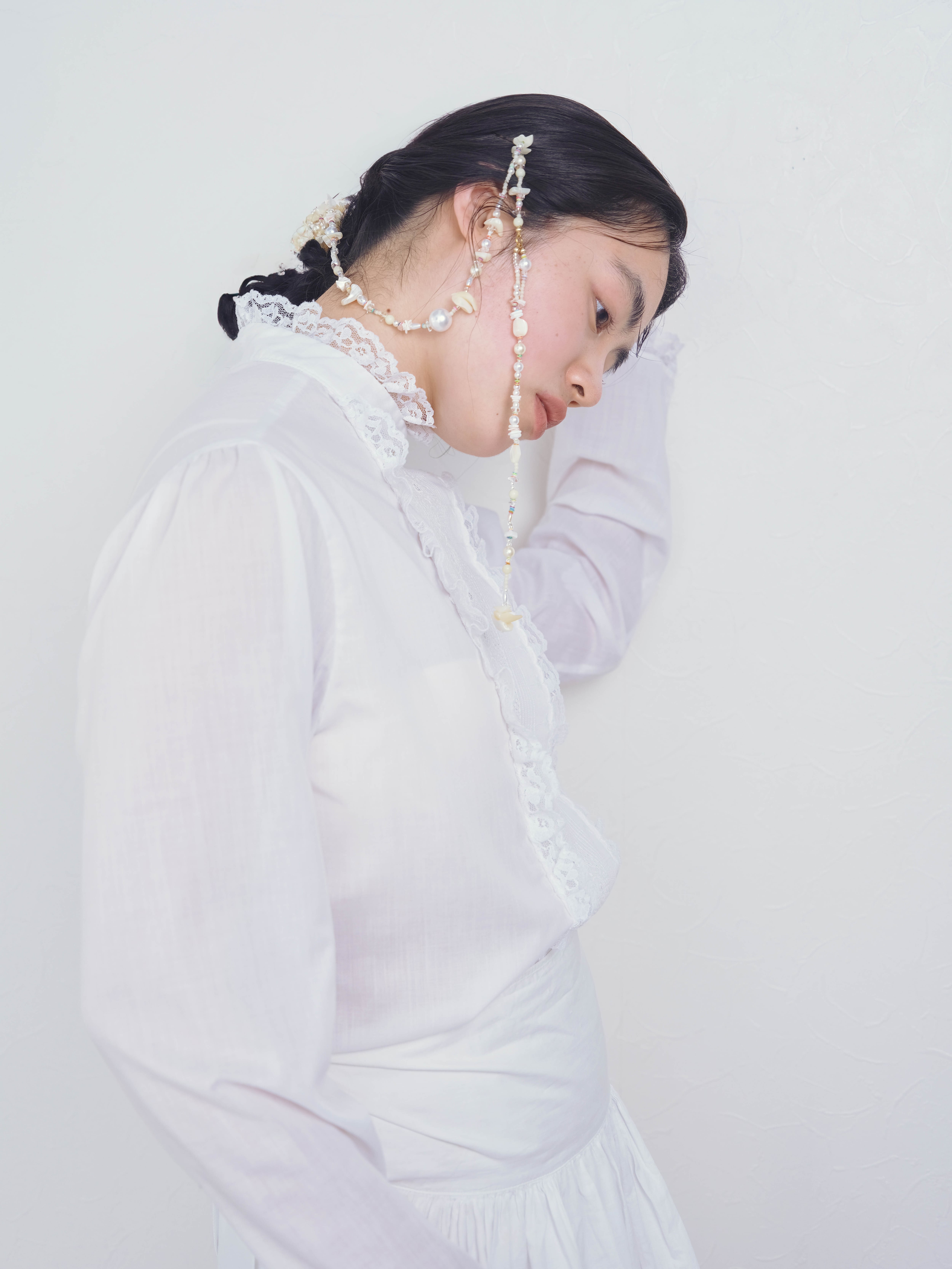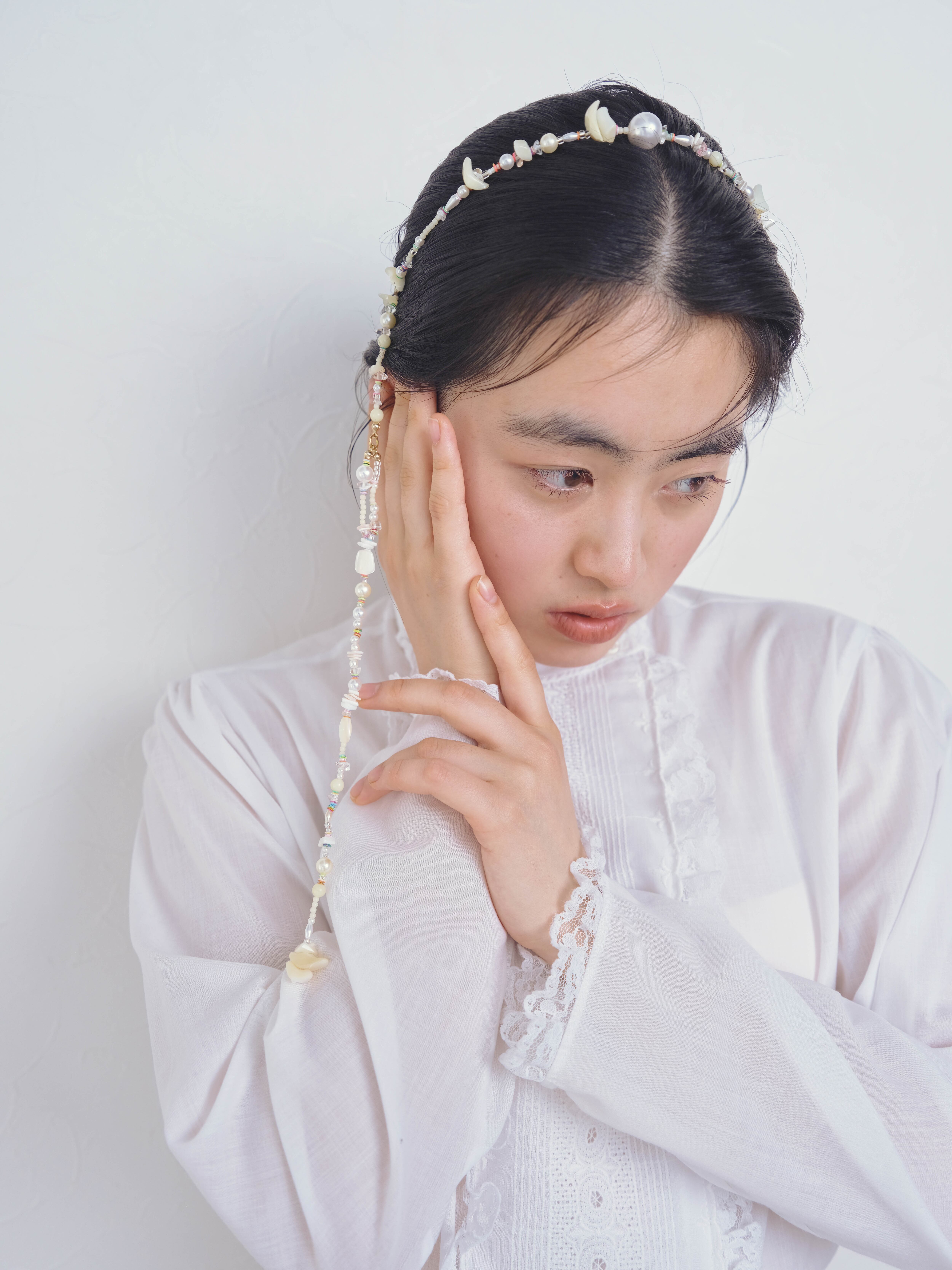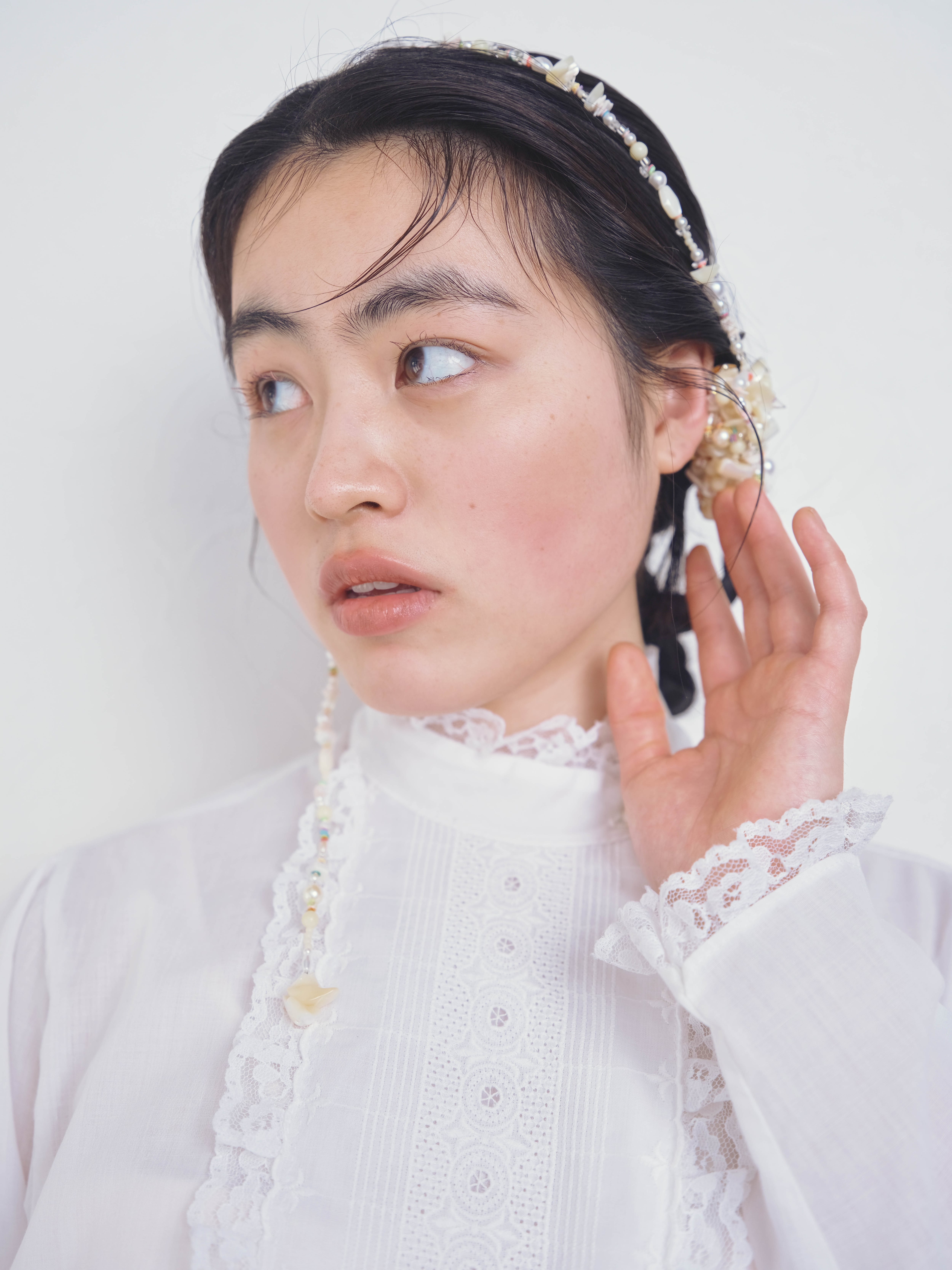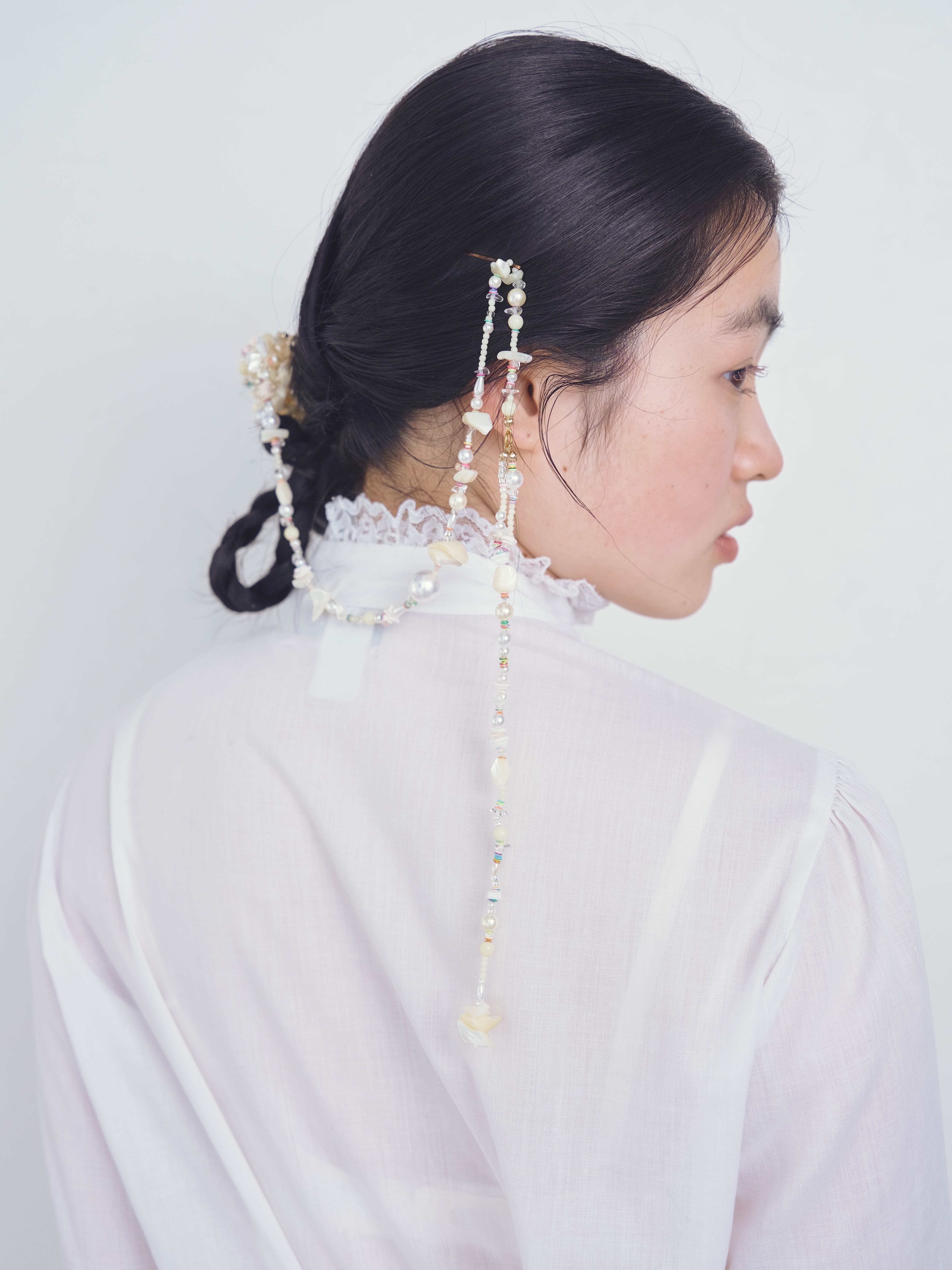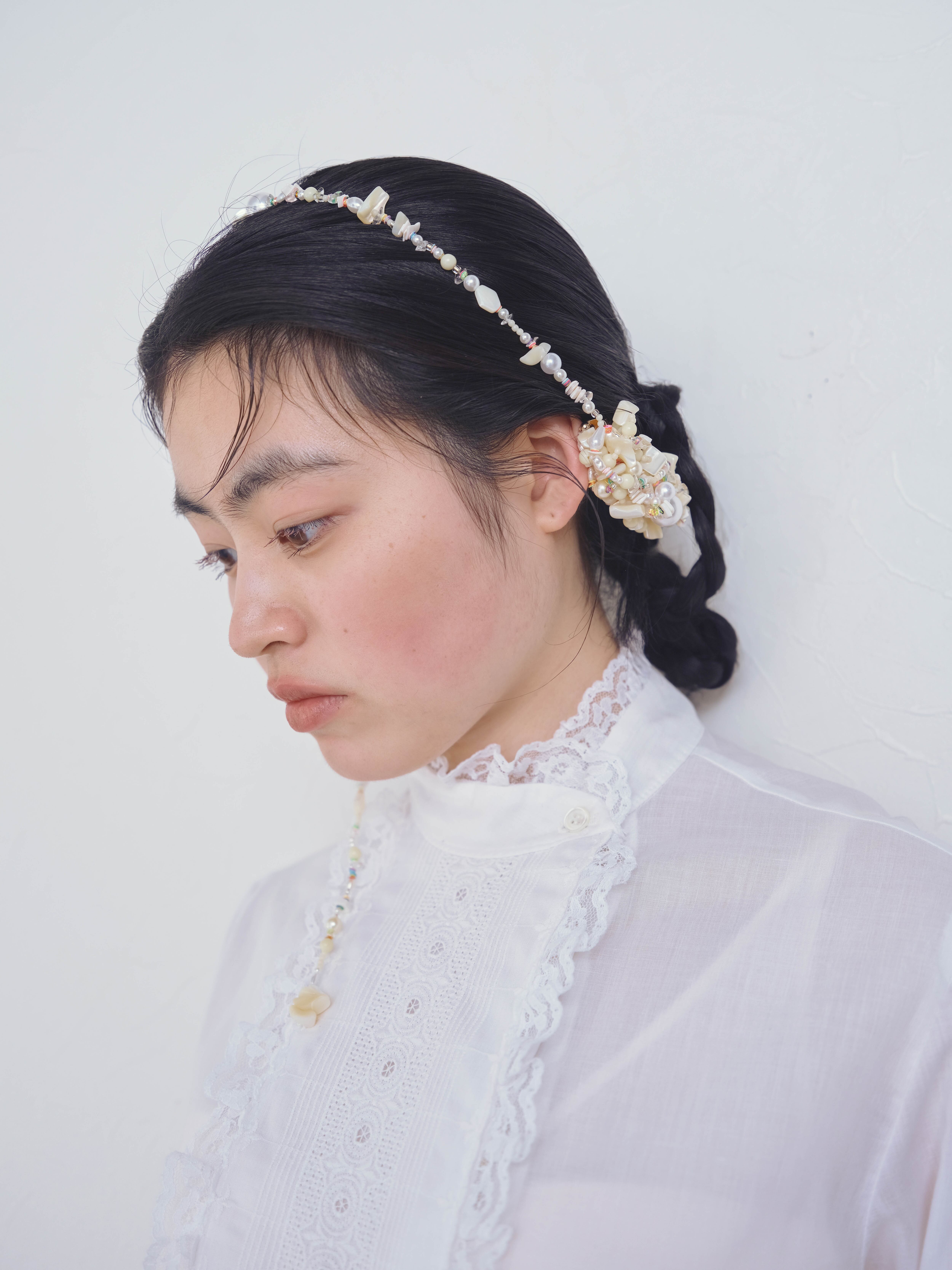 髪にも、首元にも、そっと寄り添うアクセサリーに仕立てました。